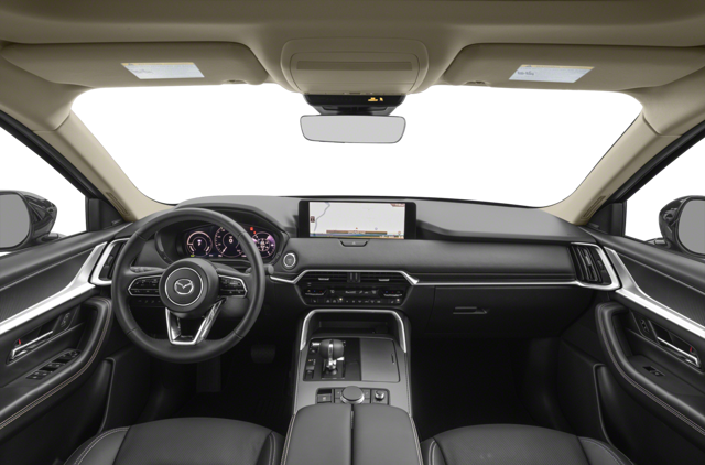 Inside the 2025 CX-90 PHEV, luxury and functionality create a welcoming environment for up to eight passengers. The three-row seating configuration offers flexibility, with available second-row captain's chairs for added comfort. The CX-90 PHEV has a leather-wrapped steering wheel and shift knob. Three-zone automatic climate control ensures a pleasant atmosphere for all occupants.