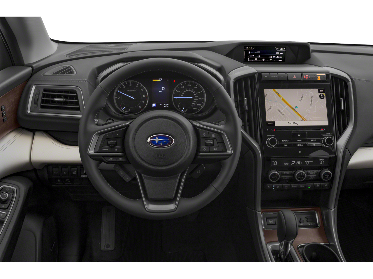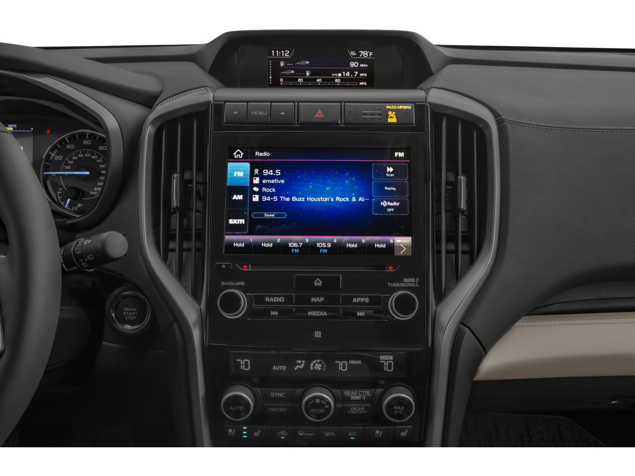 - Radio: Subaru STARLINK 8.0" Multimedia Nav System -inc: AM/FM stereo HD Radio w/single disc CD player, MP3/WMA/CRR/RW file capability, multi-touch gesture high resolution LCD display screen, voice activated controls for radio and navigation, Bluetooth® audio streaming connectivity, Bluetooth® hands-free phone connectivity, Bluetooth® hands-free SMS text messaging connectivity (applicable w/compatible cell phone), Near Field Communication (NFC), iPod control capability, SiriusXM All Access radio (subscription required), SiriusXM Traffic (subscription required), SiriusXM Travel Link (subscription required), smartphone integration for Aha, Android Auto, CarPlay and Pandora, STARLINK cloud applications, steering wheel controls for audio and Bluetooth®, harman/kardon quantum logic surround sound speaker system w/14 speakers, subwoofer and harman/kardon 792 watt equivalent maximum output amplifier, 3.5mm auxiliary input jack and front, second and third row dual USB ports